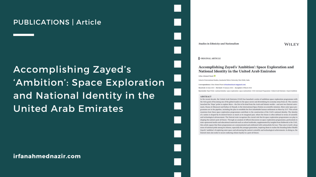 Recommended Citation: Nazir, Irfan Ahmed. 2026. ‘Accomplishing Zayed’s ‘Ambition’: Space Exploration and National Identity in the UAE’. Studies in Ethnicity and Nationalism (Wiley), 3 April.